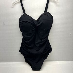 LEILANI One Piece Black Swimsuit Padded Underwire Ruched Bust and Front Size 12 New w/ Tags Adjustable Straps 30" Bust, 28" (stretch) Waist