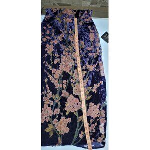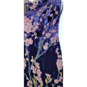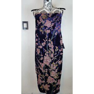 Lulus Make Dress Navy Blue Velvet Floral Strapless Midi Dress Size Small