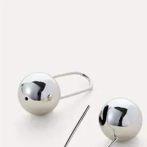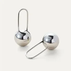 These Jenny Bird Celeste earrings showcase a sleek, minimalist design with polished silver spheres that reflect light beautifully. The elegant drop style is complemented by a classic shepherd's hook, offering a contemporary yet timeless appeal.