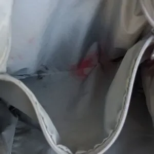 Inside: two hidden slip pockets under front flap, key clasp