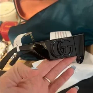 Brand new with tags and box Gucci sunglasses from the runway collection. Experience timeless elegance with these Gucci sunglasses, featuring chunky black oval frames and a vintage-inspired design. The bold construction and dark lenses make a striking statement, while the iconic Medusa logo adds a touch of luxury.