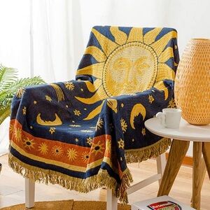 Bohemian Vintage Sun/Moon Retro Reversible Throw Blanket for Sofa/Bed/Dorm/Patio