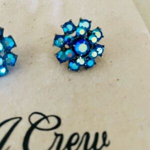 These exquisite J. Crew earrings showcase a cluster of shimmering blue crystals, reflecting hues of turquoise and sapphire. Their compact size makes them ideal for adding a touch of elegance to everyday wear.