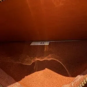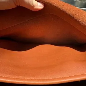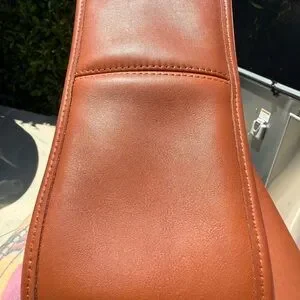 New old stock, with original retail tag still on! Original paper work and inspected by tag inside. Beautiful condition. No marks, no inks, no smells, no molds. Two tiny marks under buckle from storage.