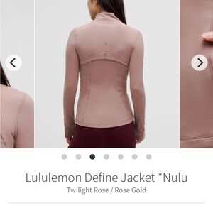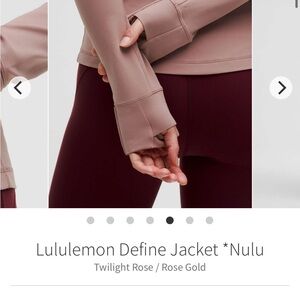 Lululemon Define Jacket nulu Twilight Rose with rose gold zipper