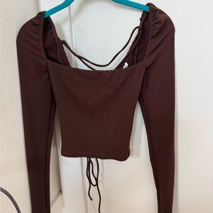 This elegant brown top features a stylish square neckline and long sleeves, perfect for any occasion. Its rich color adds a touch of sophistication to your wardrobe. Only worn a few times.
