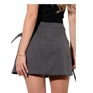 LAST ONE Tomboy Edgy Hipster Wrap Belted Pleated Grunge Mini Skirt Graphite Grey