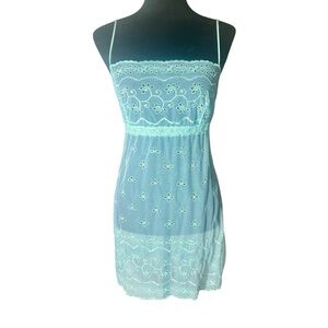 Experience the luxurious comfort of this Victoria's Secret chemise, crafted in a stunning green hue with intricate eyelet lace detailing. The lightweight, mesh fabric and elegant design make it a perfect addition to your sleepwear collection. Enjoy the flattering fit and sophisticated style of this beautiful piece.