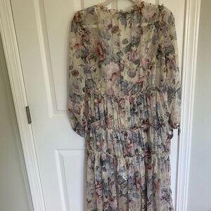 Sheer Maxi Dress with a floral mini dress slip. Perfect for a vintage-feel or a fall aesthetic!