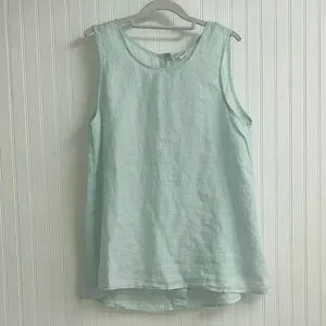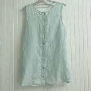 Lightweight cool 100% linen sleeveless Sigrid Olsen top, fresh unique color, buttons down the longer back.