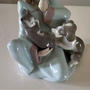 LLADRO CAT NAP Figurine Girl Holding Sleeping Cat w/ curious Dog #5640 1989