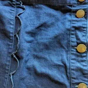 This Eloquii mini skirt is super cute with scalloped trim on the front. Front buttons are all functional. Some stretch in fabric. Measurements in pics. Excellent condition, a little creased from storage.