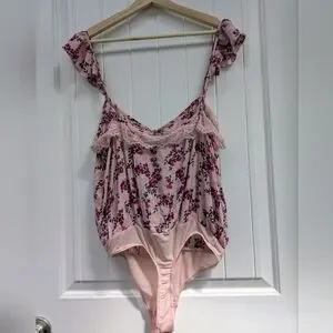 Intimately Free People Pink Floral Bodysuit with Tie Front - Take It Away