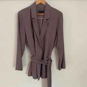 Frank and Oak The Fluid Blazer Dusty Lavender Linen Belted Jacket Small