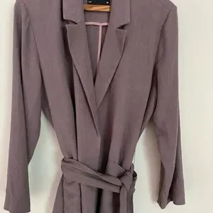 Elevate your style with this elegant dusty mauve (greyed tone purple) belted jacket from Frank and Oak. Perfect for any occasion, with a soft fluid design and flattering fit. Two front pockets, inner pockets too. Made of viscose,linen and cotton