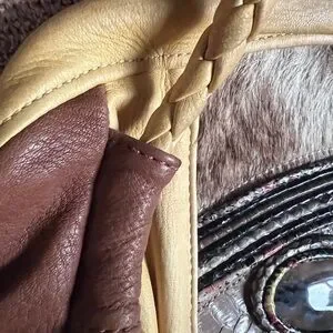 Unique Vintage Raven Works studio deerskin leather, fur and snake skin shoulder bag. Excellent condition and beautiful detail!