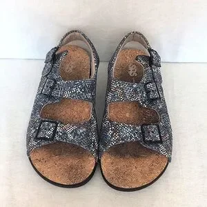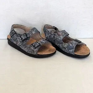 SAS Womens 9.5 Relaxed Heel Strap Sandal Blue Leather Casual Summer Vacation