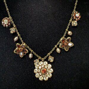 Liz Palacios SF Swarovski Crystal Antique Gold Tone Floral Necklace Brown Amber