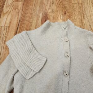 Anthropologie Charlie And Robin Knit Sweater Cardigan Ruffled Ivory Beige XS