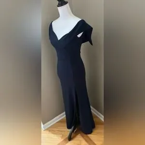 Sway and swoon all night long in the Lulus Song of Love Navy Blue Off-the-Shoulder Maxi Dress! An overlapping, off-the-shoulder neckline creates a romantic look atop this stunning maxi dress, composed of medium-weight crepe knit. Princess-seamed bodice carries into a fitted waist and figure-flaunting mermaid skirt with a sultry side slit. Hidden back zipper/clasp.