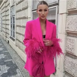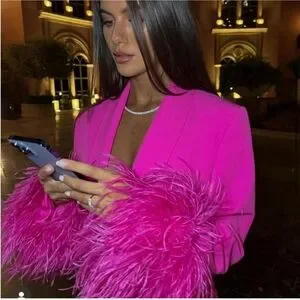 Zara Straight Cut Pink Feather Blazer NWT Size S