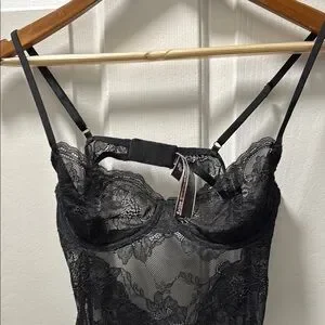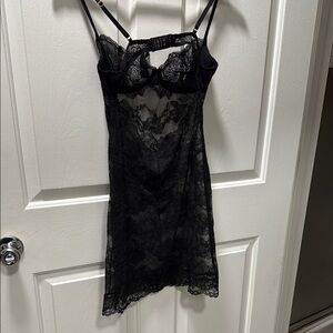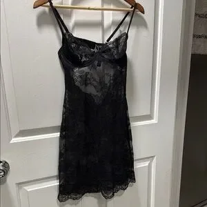 Victoria's Secret Black Lace Chemise with Floral Design