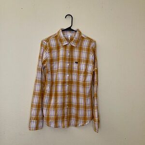 RVCA Woman’s Button Up Flannel Design Size Large Orange, Purple, Yellow Colors