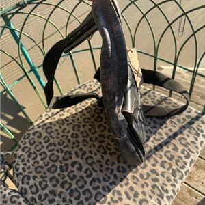 The last photo with the woman wearing it is how big it is on. The color of the bag I bought is BLACK. If you buy it in the store it is $300. This has never been used. Tags still on.