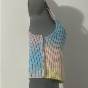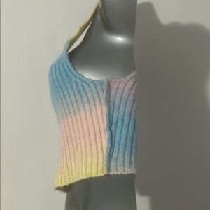 This stylish crop top from Urban Outfitters features a ribbed texture and a vibrant blend of pink and blue hues. Designed as a tank top, it offers a trendy cropped fit perfect for casual outings.