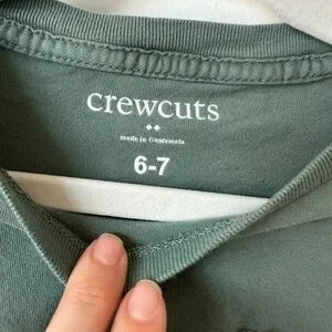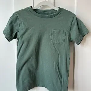 EUC JCrew Factory kids short sleeve jersey pocket tee, color is pale spinach, size 6-7, 100% cotton.