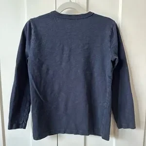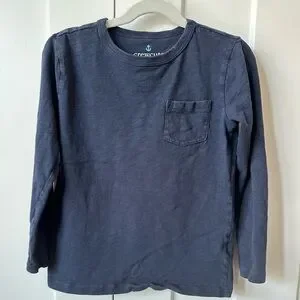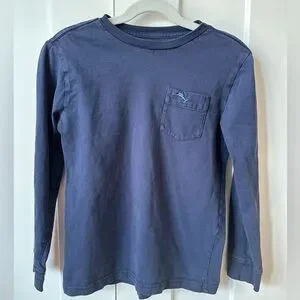 EUC Crewcuts Kids' long-sleeve garment-dyed pocket T-shirt, size S 6-7, color is deep admiral.
