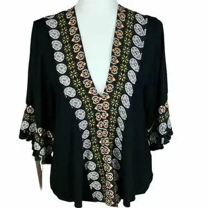 ANTHROPOLOGIE W5 V-Neck Black/Paisley Top SZ-S
