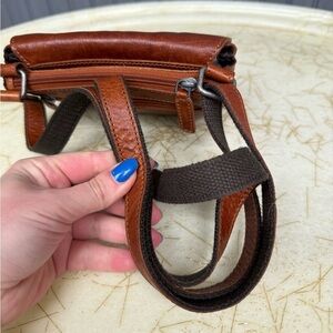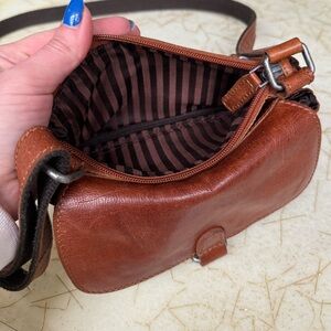 Style Keywords: vintage leather bag, small crossbody, classic brown bag, hands-free purse, travel-friendly, everyday handbag, minimalist purse, compact satchel, quality leather, timeless style, urban chic, rustic charm, western aesthetic, versatile handbag, functional fashion, streetwear crossbody, festival bag, durable leather, effortless style, artisan craftsmanship, high-end leather