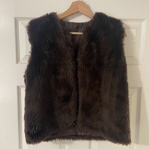 Luxurious faux fur vest in a rich dark brown color. Perfect for adding warmth and style to any outfit.