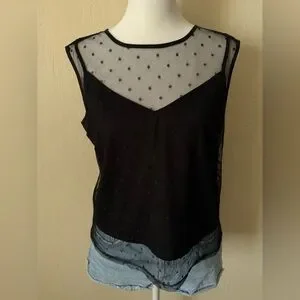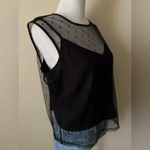 • Black sheer polka dot top top with lined cami underneath