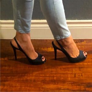 Christian Louboutin Black Patent Leather Peep-Toe Heels