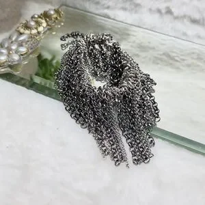 This stunning silver chain fringe bracelet adds a touch of elegance to any outfit. Perfect for any occasion. Stretch