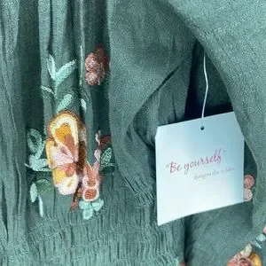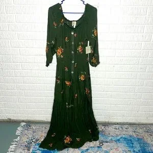 Elegant green maxi dress with floral pattern. Features button-down front and three-quarter sleeves. Perfect for any occasion. Only wore couple times