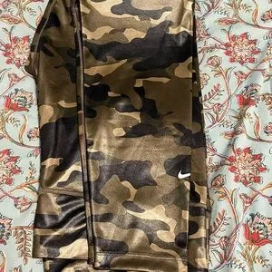 Bold camouflage leggings with iconic Nike swoosh. Comfortable and stylish.