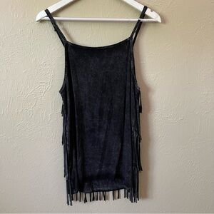 Black faded wash fringe spaghetti strap tank top.