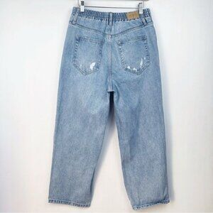 Classic cool girl style in these loose straight leg jeans, elastic waist band to the back to keep your waist snug, while leaving lots of room for that low key loose look. Gap free! For a tighter fit.