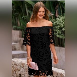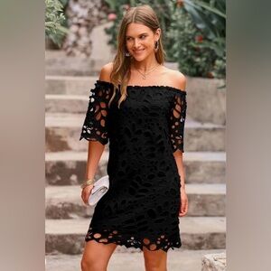 PRETTY GARDEN Summer Off Shoulder Floral Lace Flare Short Sleeve Loose Dress