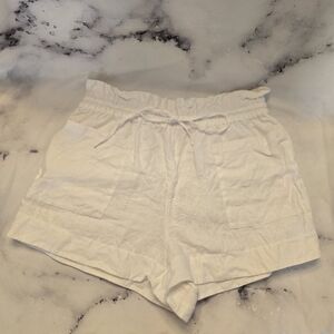 Tory Burch White 100% Linen Drawstring Paperbag Waist Coverup Shorts Size Large