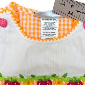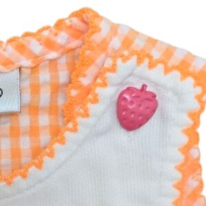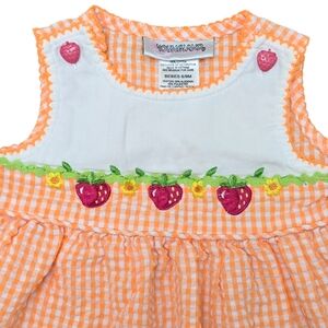 VTG Seersucker Dress 6-9m Orange White Gingham Embroidered Strawberry Youngland