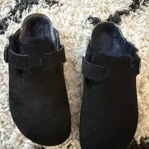 Stylish and comfortable black suede slip-on shoes for kids. Perfect for everyday wear.