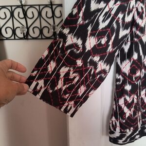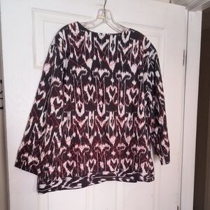 Discover the effortless style of this Chico's blouse, featuring a relaxed, boxy fit in classic black and white. The blouse's soft fabric and full-length sleeves offer comfort and versatility, making it a perfect addition to any wardrobe.