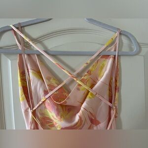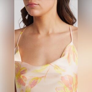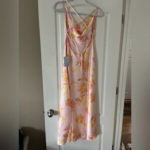 NWT brand new from Nordstrom! Gorgeous peachy yellow floral colors satin gown. Cowl draping neckline. Perfect for special occasions. Lolita style. Criss cross straps in back. Low back. Fit. Polyester. Lined. Women’s size medium. Smoke free home