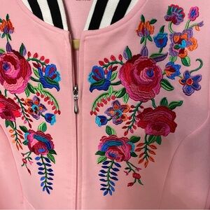 linea by louis dell'olio Embroidered Pink Zip Up Hoodie Sweater