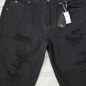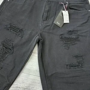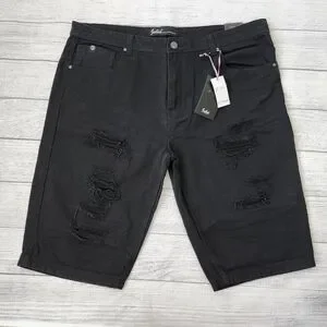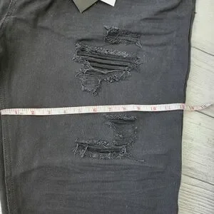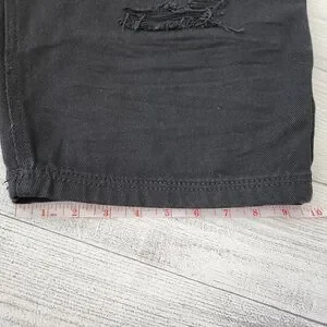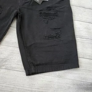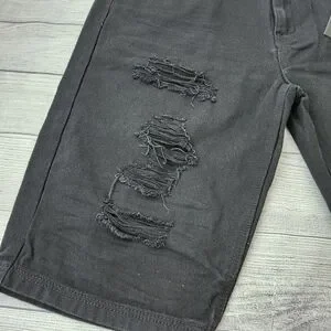Stylish black distressed denim shorts. Perfect for casual wear.