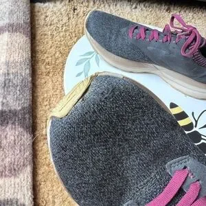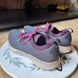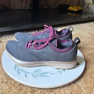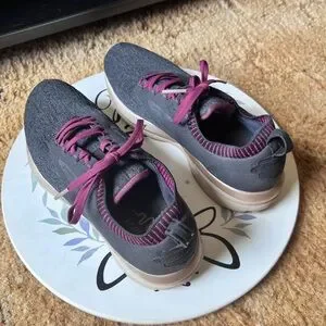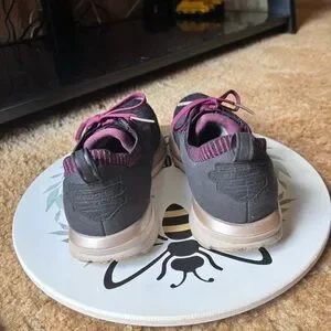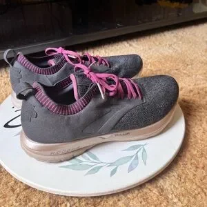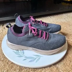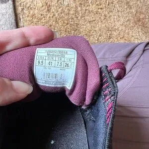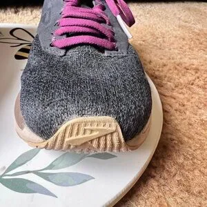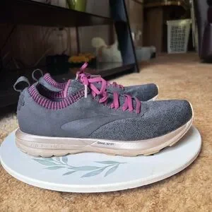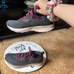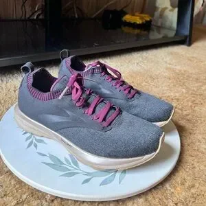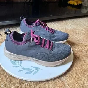 Running Shoes Black Purple. These BROOKS are in excellent used condition. Has light wear to the toes of the shoes. No other issues very clean no dirt no stains bottoms are very clean. The size is woman’s 9.5 these shoes have nice cushion insoles. These shoes are perfect for running, walking or working out in. Super comfortable and stylish. I'd describe the ricochet as not being too soft and not too firm. It has a responsive return and glove like fit in the heel and mid foot, with a little extra space for the toes. This is the